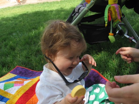 Evelyn enjoyed trying on Dad’s sunglasses…