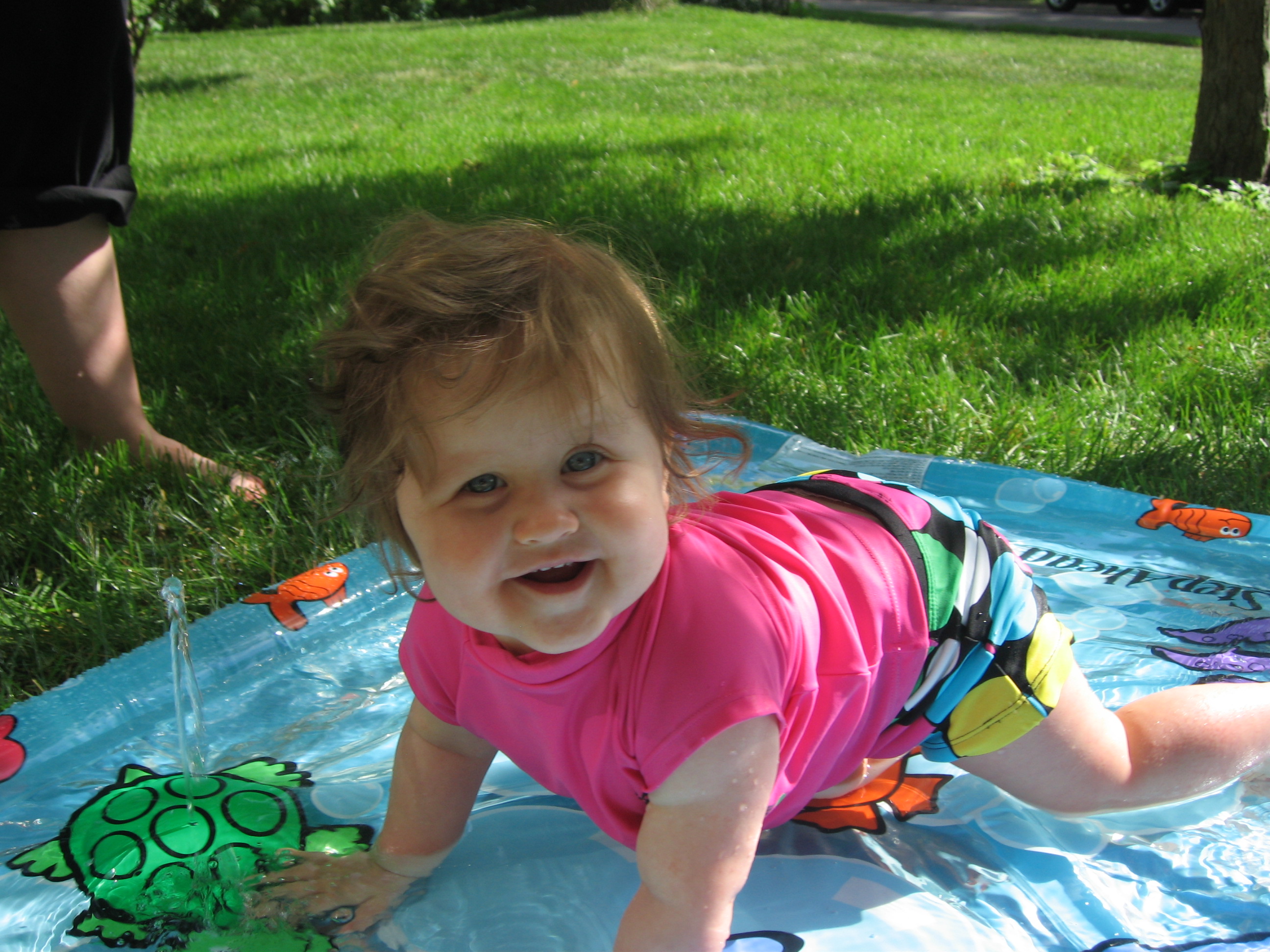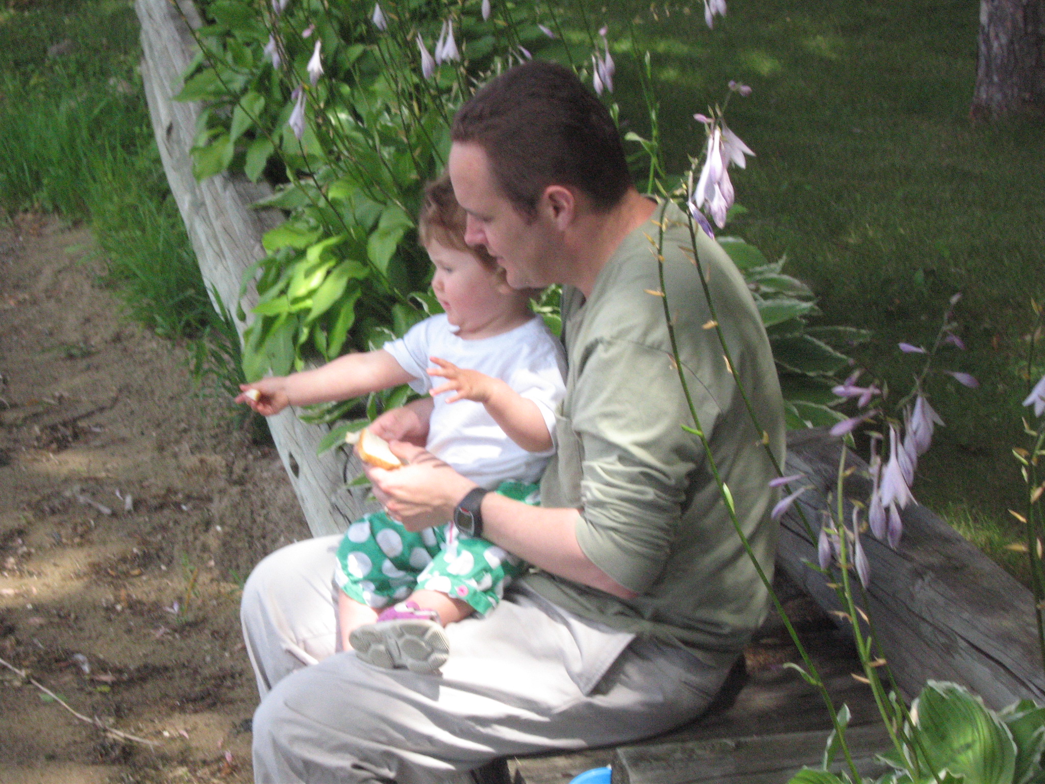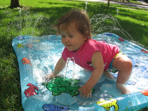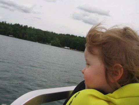 Evelyn recently took a vacation in northern Minnesota with her family. In addition to eating lots of delicious blueberries, she got to go wading in the lake, fed the ducks, took her first (and second and third!) boat ride, and got to meet some of Mom’s side of the family who she hadn’t met before. She also made the transition from a cautious hesitant walker to a confident toddler. Blink! Now I’m walking!