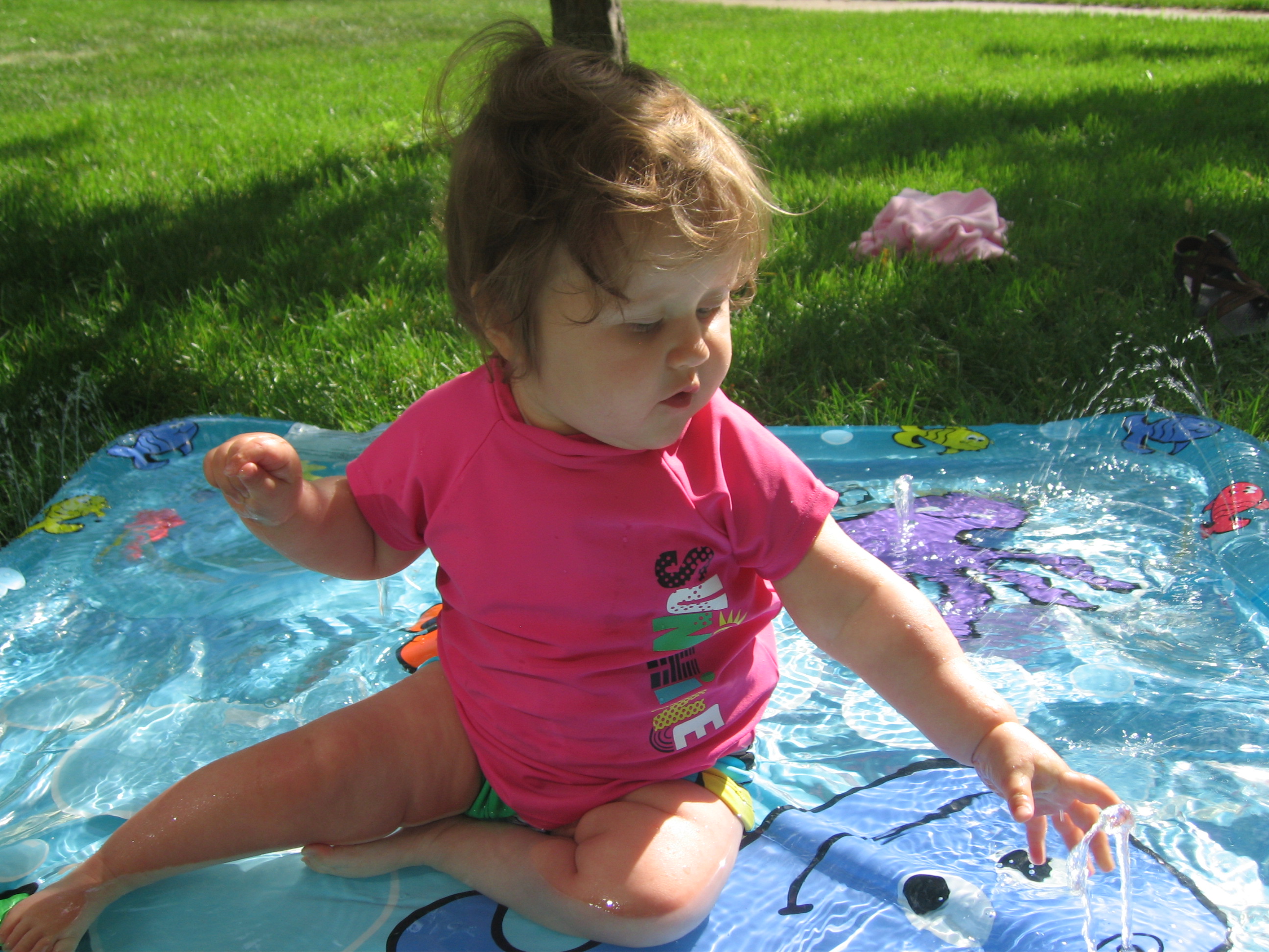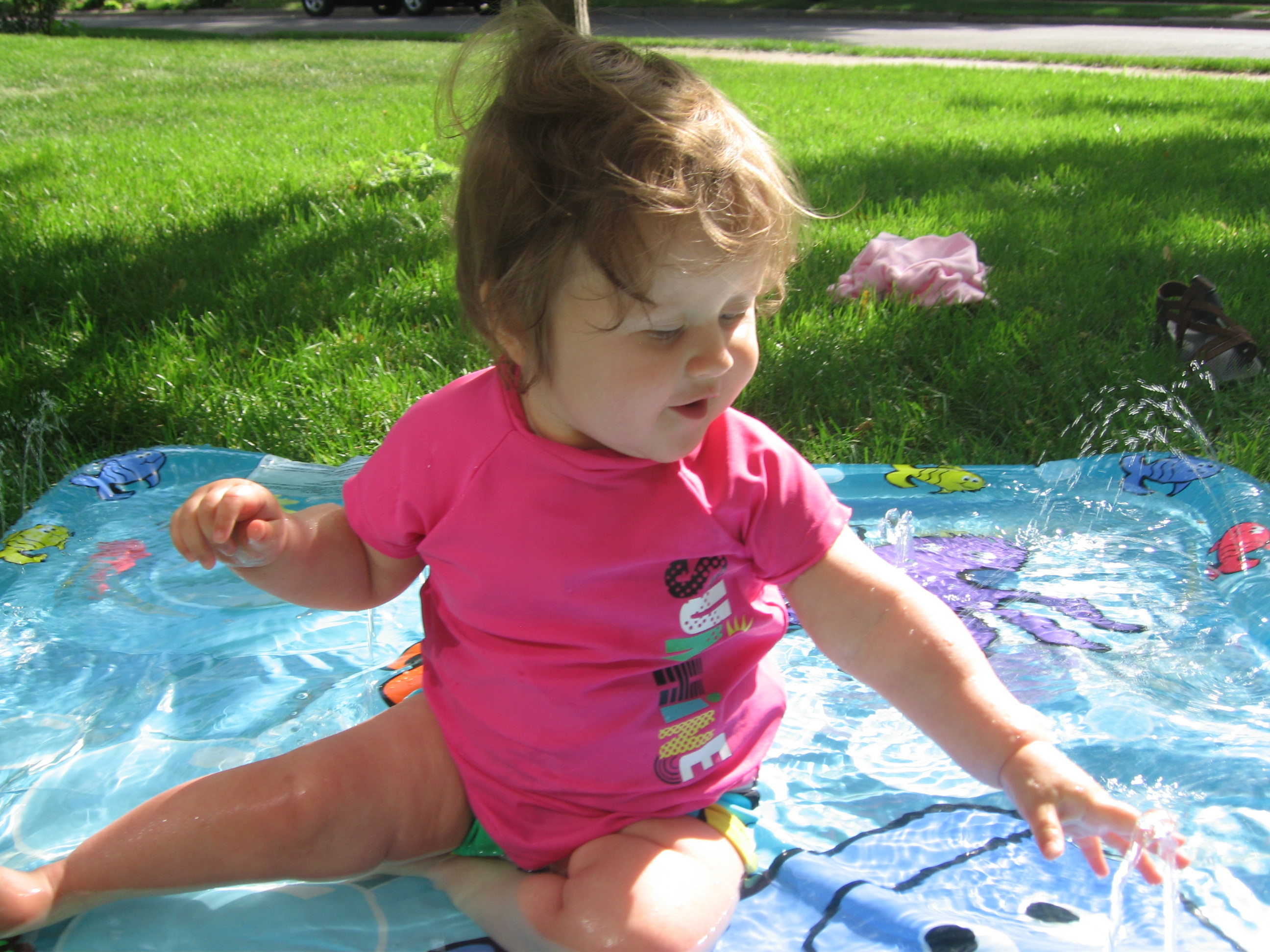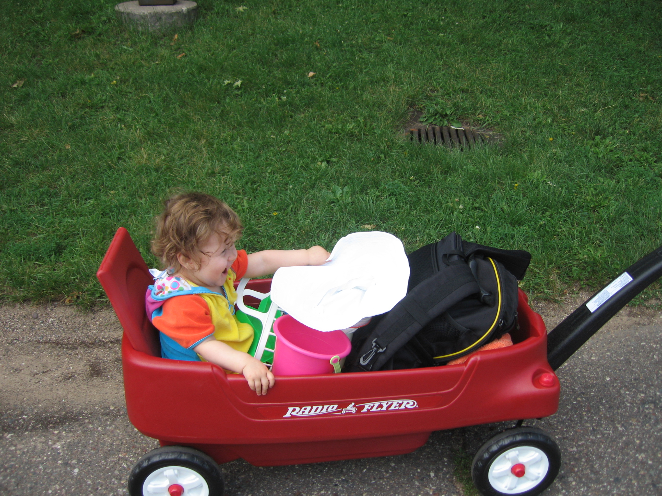 Evelyn recently took a vacation in northern Minnesota with her family. In addition to eating lots of delicious blueberries, she got to go wading in the lake, fed the ducks, took her first (and second and third!) boat ride, and got to meet some of Mom’s side of the family who she hadn’t met before. She also made the transition from a cautious hesitant walker to a confident toddler. Blink! Now I’m walking!