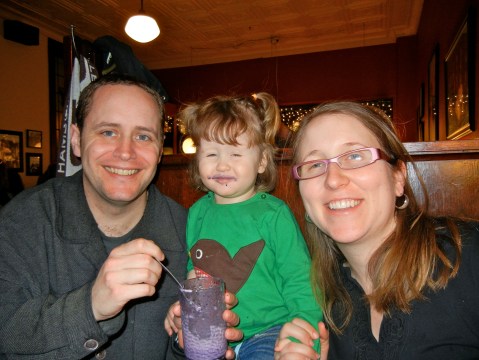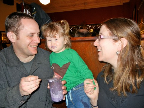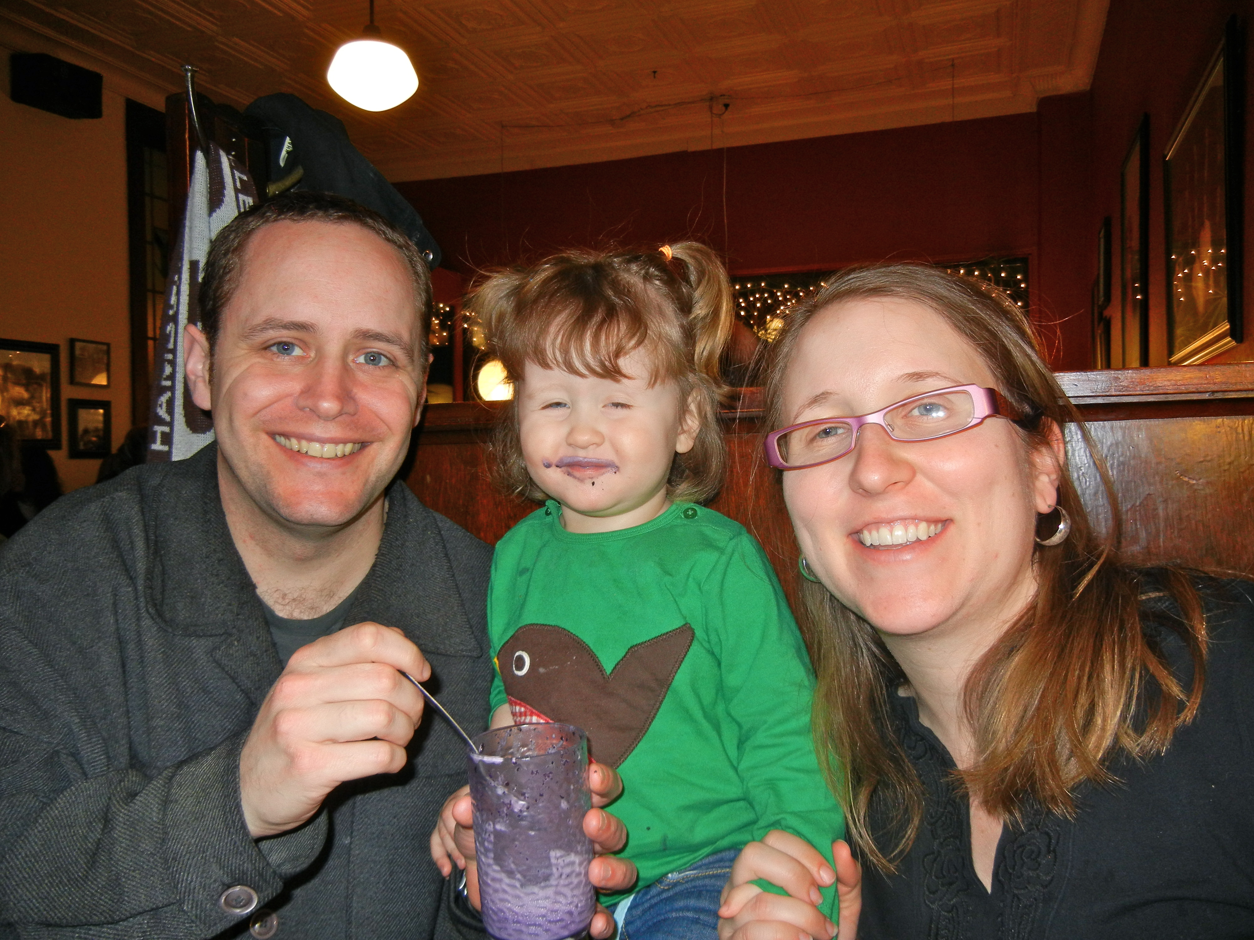 Another week, another milkshake.  This time, while she liked using the straw, she was more interested in the spoon method.  Also on display in these pictures is her new “smile for the camera” face.