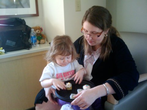 There was a little birthday party to welcome Elizabeth, and Evelyn got to have thirds on cupcakes.  (The cupcakes were very small.)