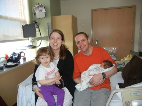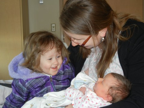 Evelyn is a big sister!  Over the weekend she got to go to the hospital to visit Mom and her new baby sister Elizabeth.  She was very happy to see Mom, and very excited to meet the baby!