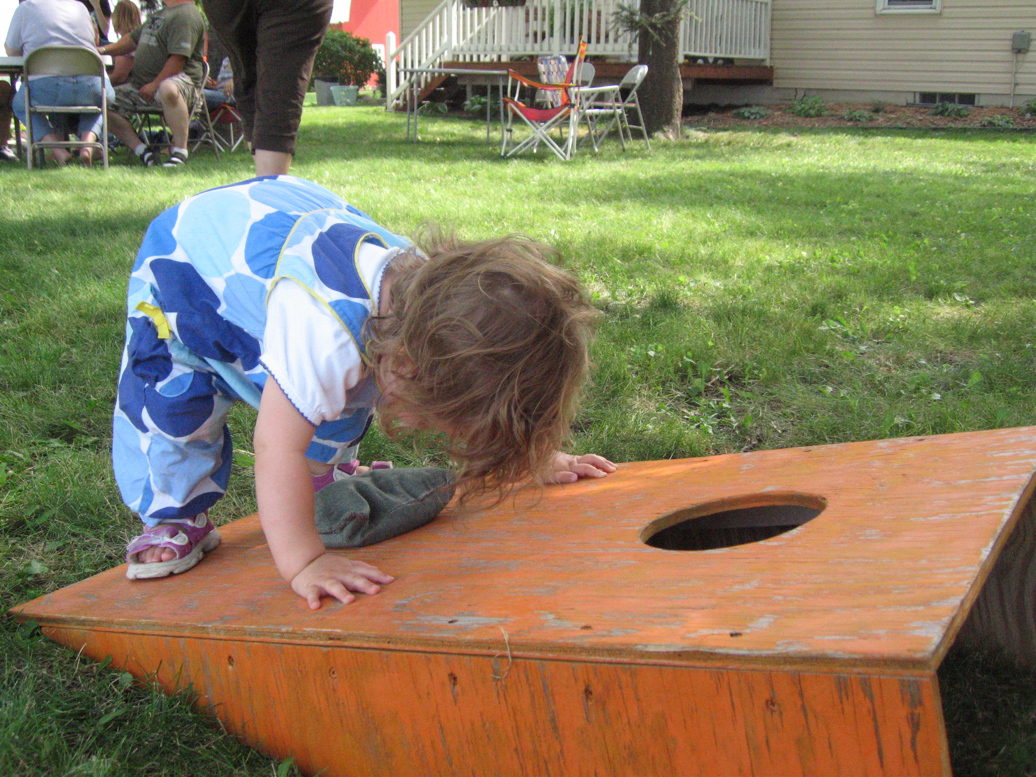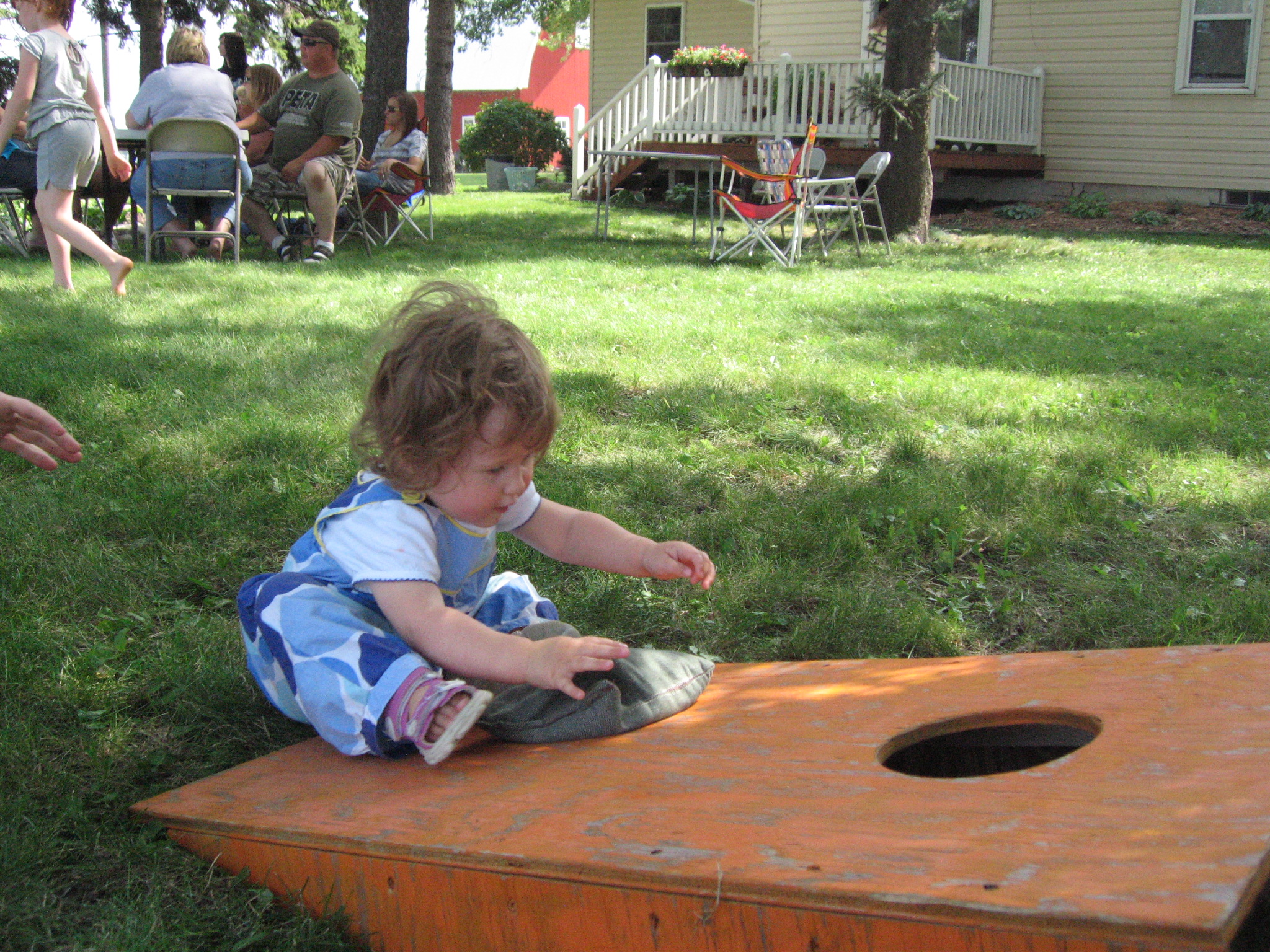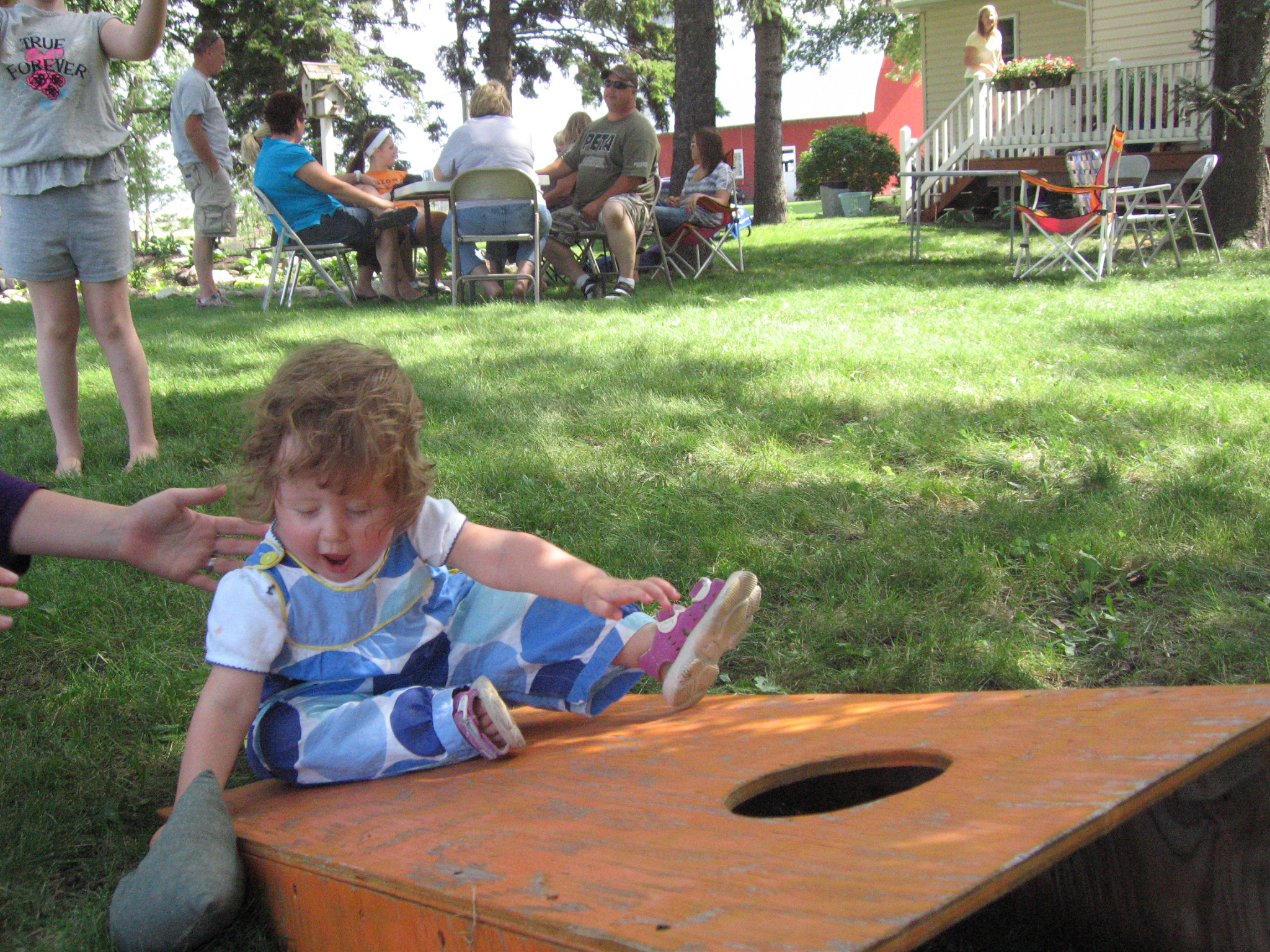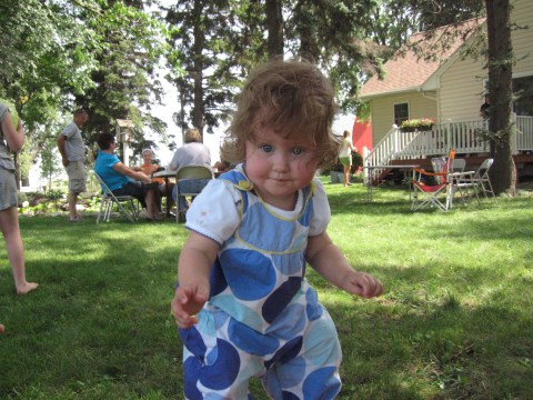 Evelyn recently took a vacation in northern Minnesota with her family. In addition to eating lots of delicious blueberries, she got to go wading in the lake, fed the ducks, took her first (and second and third!) boat ride, and got to meet some of Mom’s side of the family who she hadn’t met before. She also made the transition from a cautious hesitant walker to a confident toddler. Blink! Now I’m walking!